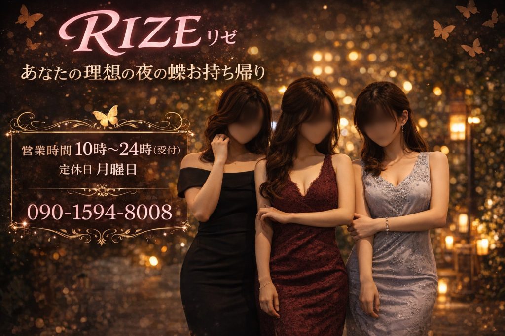 リゼでは、可愛いキャバ嬢やラウンジ嬢、素人さが残るガールズバーのキャスト、 クラブやスナックのママなど、普段ならおさわり厳禁で手の届かない夜の蝶達を、 お持ち帰りして遊べる風俗店をコンセプトにしております。